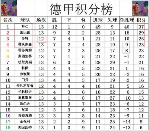 北京时间12月7日凌晨,2025-26赛季德甲联赛第13轮再赛6场。经过一番鏖战,勒沃库森客场0:2不敌奥格斯堡,莱比锡主场6:0狂胜法兰克福,圣保利客场1:1战平科隆,海登海姆主场2:1小胜弗赖堡,拜仁客场5:0大胜斯图加特,沃尔夫斯堡主场3:1轻取柏林联合。