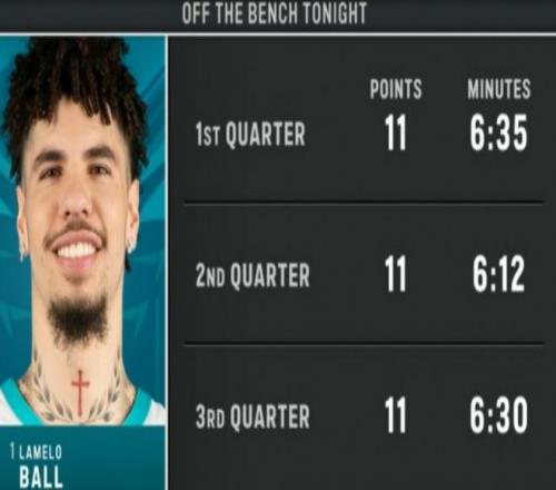 有意思的是,鲍尔前三节各出战6+分钟,并且每一节都砍下11分。